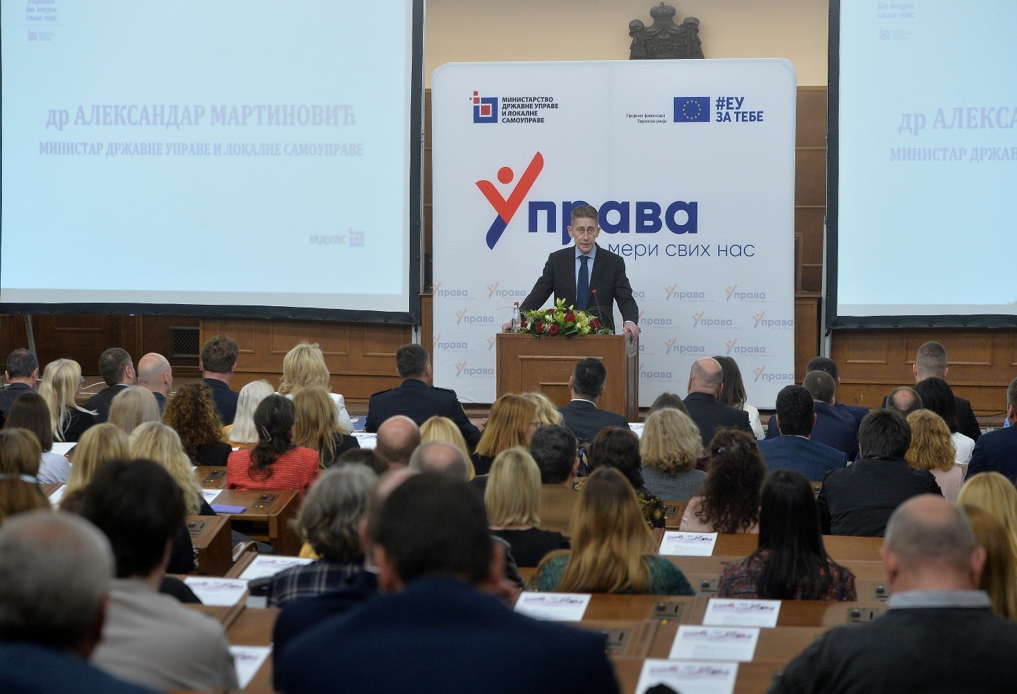 „Захваљујући труду који службеници улажу у развој личних и професионалних знања и вештина, из године у годину можемо да се похвалимо све ефикаснијим услугама које се пружају грађанима, али и импозантним бројевима. Само током прошле године више од 5,5 милиона грађана није морало у различитим поступцима да прилаже исправе о свом личном статусу, јер су их органи прибављали из Регистра матичних књига по службеној дужности. Исто тако, 448 службеника на пословима ажурирања јединственог бирачког списка донело је близу 960 хиљада решења на којима се заснивају промене у бирачком списку“, истакао је министар државне управе и локалне самоуправе др Александар Мартиновић.